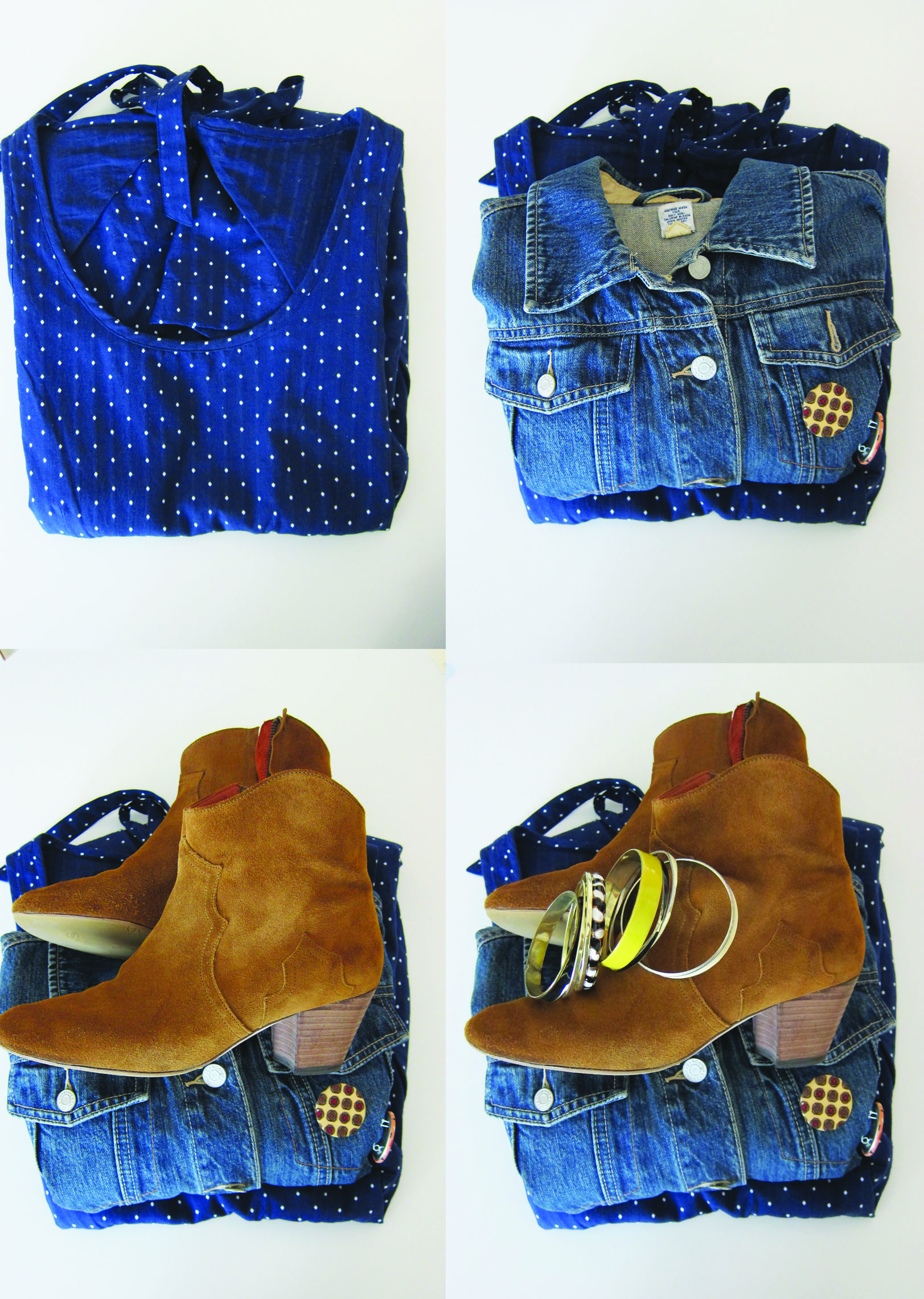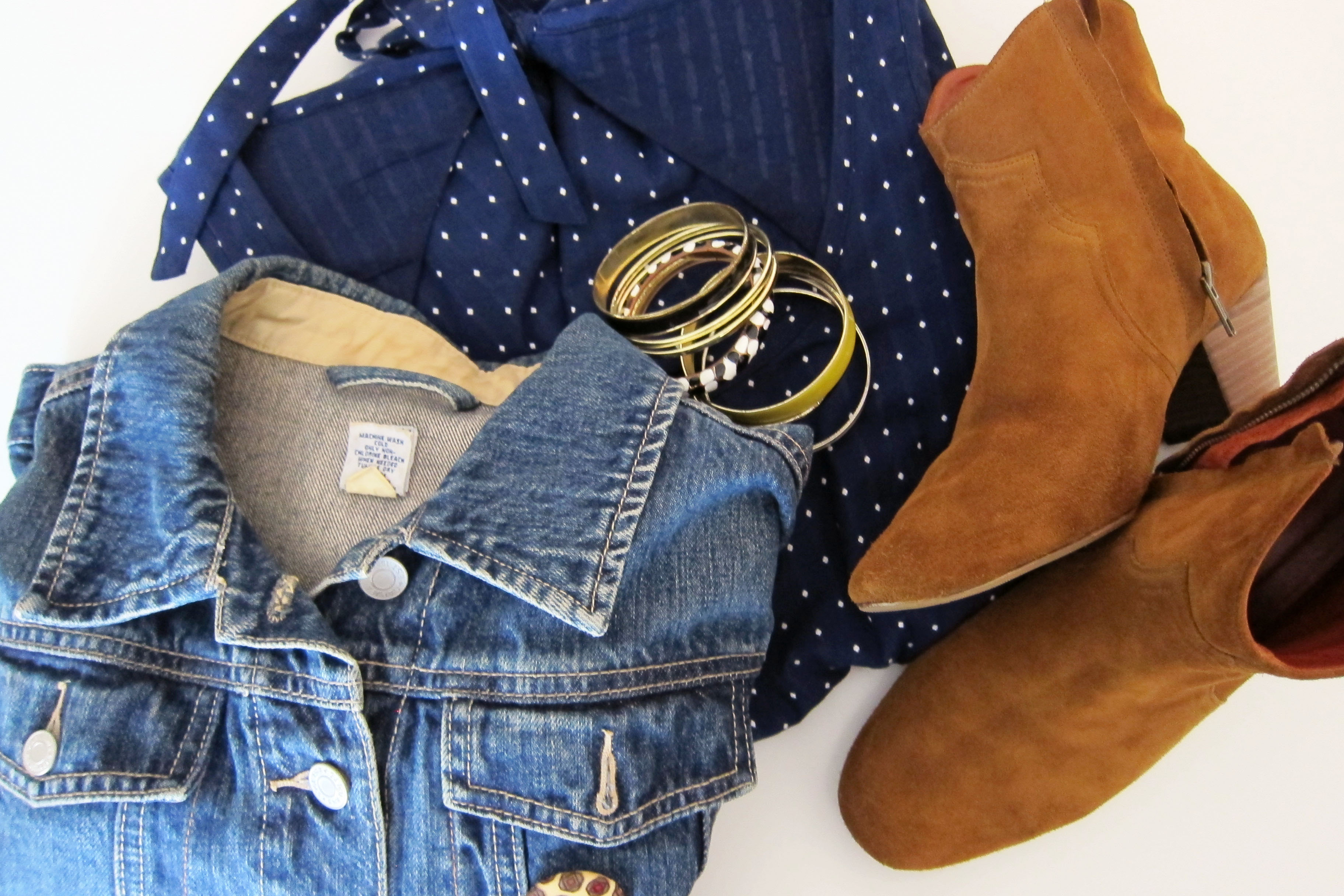 (comptoir des cotonniers dress, gap jean jacket, isabel marant dicker boots, forever 21 bracelets)