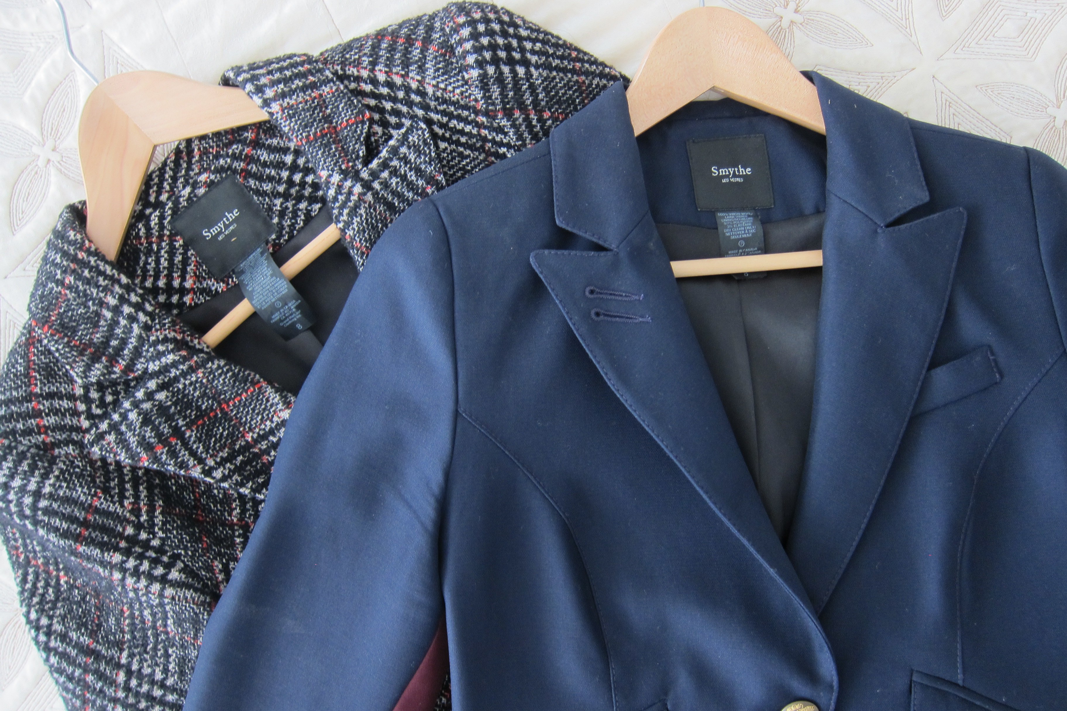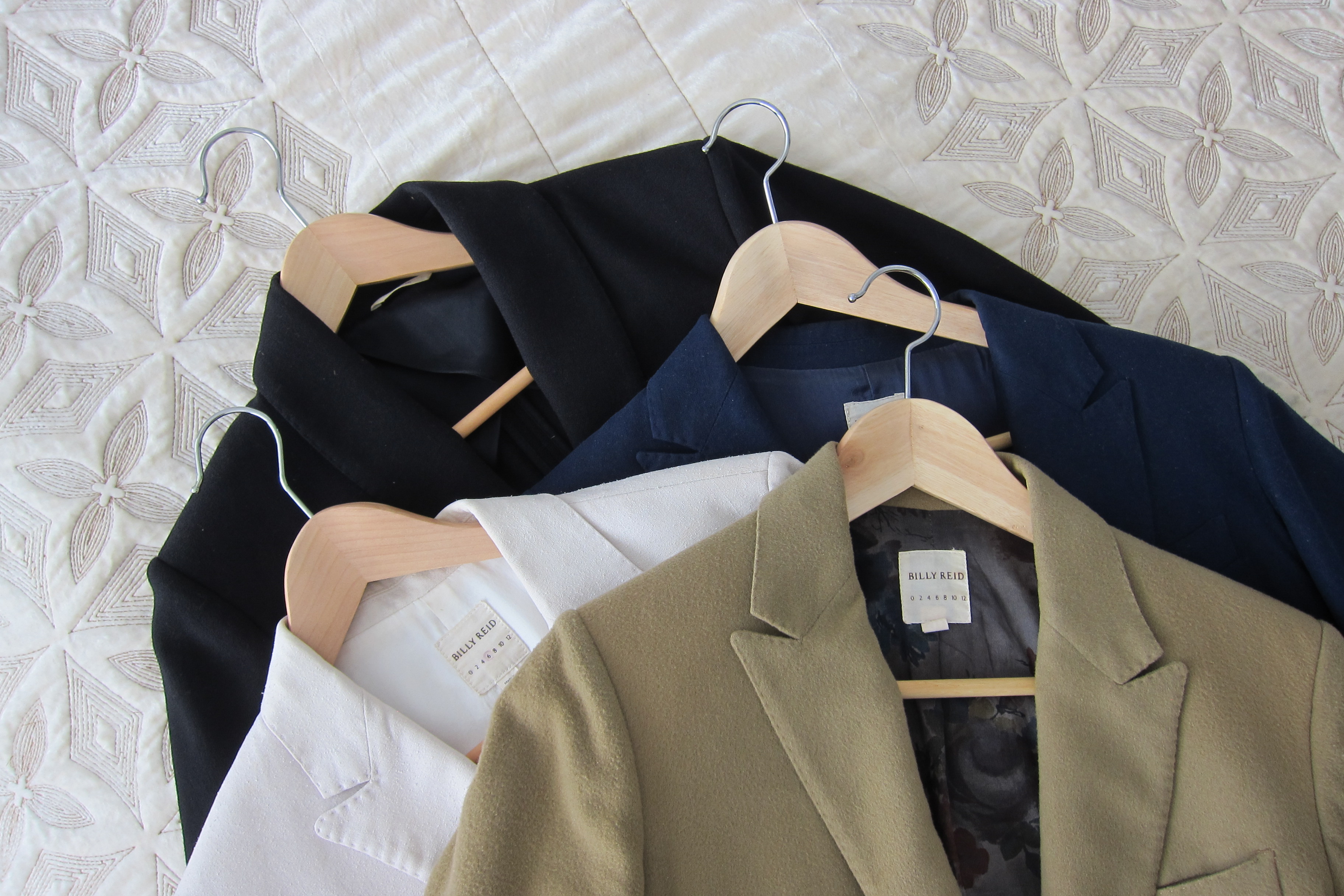 5) fitted blazers. i used to accept the j.crew schoolboy blazer as an allowable piece for my work wardrobe until i tried on a fitted billy reid blazer and started reevaluating all my life choices. the j.crew blazer, though it works for some, is just not the right shape for my body. i need skinny arms and a longer length, with a slight nipped in waist, to not feel like i am in some sad 80’s sitcom. these blazers are such an important part of my closet that i did close-ups of each (i own nine blazers total).
